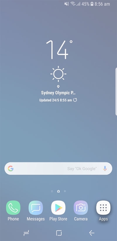 1. Perbraukite aukštyn pagrindiniame ekrane arba bakstelėkite Programos.