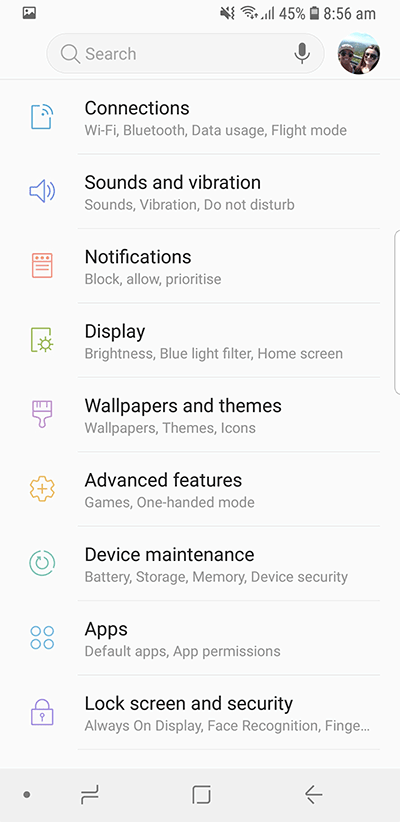 3. Slinkite žemyn ir bakstelėkite ant Paskyros ir atsarginis kopijavimas.
