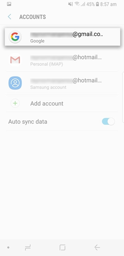 5. Bakstelėkite Google paskyros, kurią norite pašalinti.