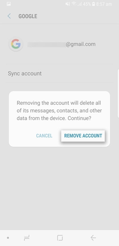 7. Dar kartą bakstelėkite Pašalinti paskyrą, kad patvirtintumėte, jog žinote apie tam tikrus duomenų praradimus.
