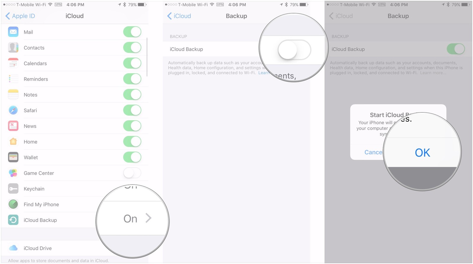 iCloud pradės kurti atsaragines kopijas kas 24 valandas, kol iPhone arba iPad bus prijungtas prie Wi-Fi tinklo ir prijungtas prie įkroviklio. Daugeliu atvejų tai įvyks miego metu.