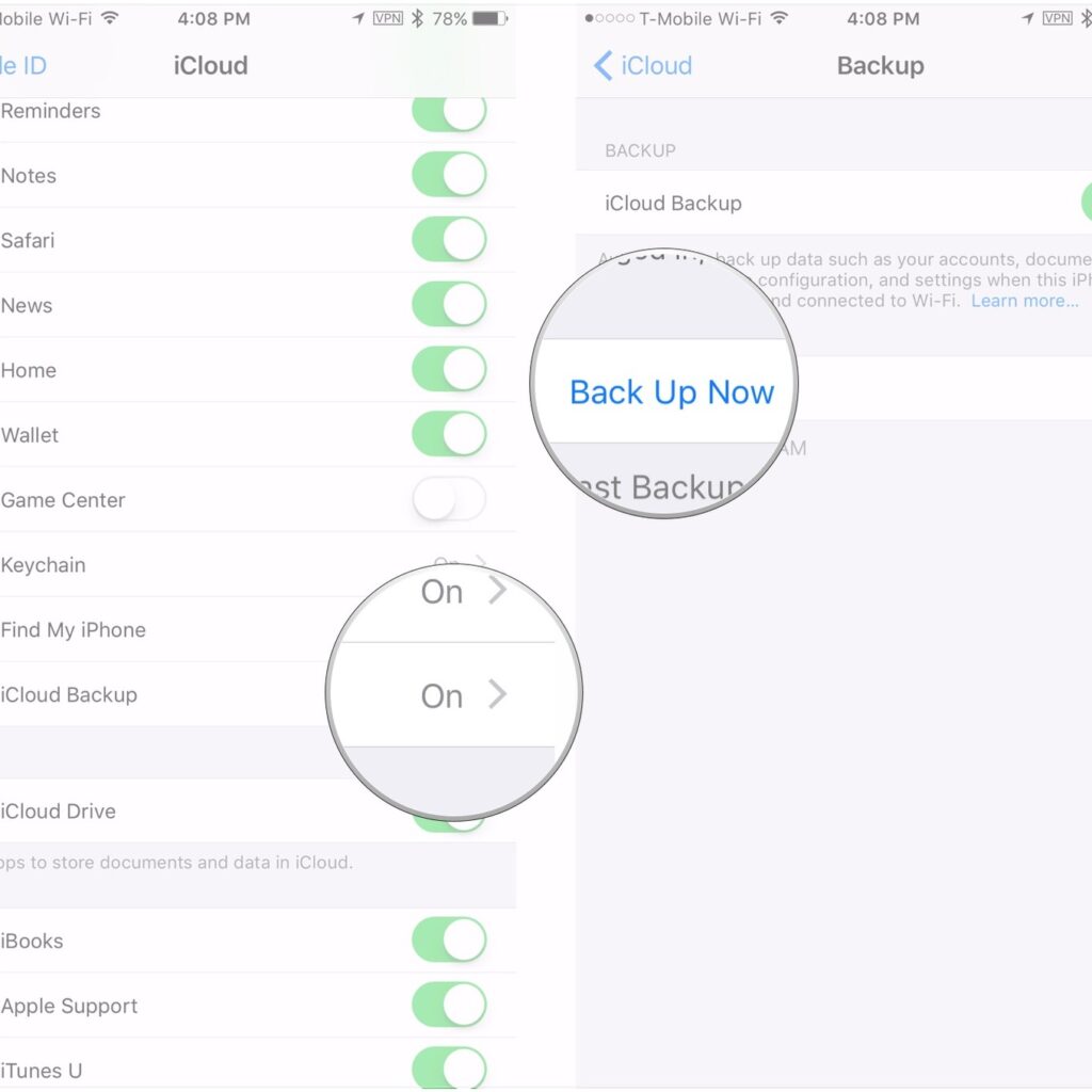Atsarginė kopija turi pasidaryti kartą per 24 valandas kai tik Jūsų iPhone ar iPad yra prijungtas prie Wi-Fi tinklo ir yra prijungtas įkroviklis. Tačiau yra būdas padaryti atsarginę kopiją rankiniu būdu iškart.