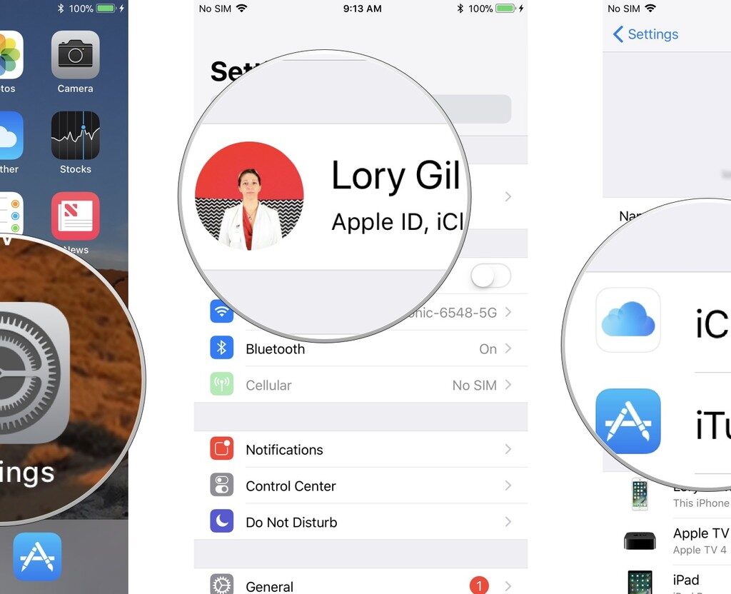 2. Bakstelėkite Apple ID ekrano viršuje.