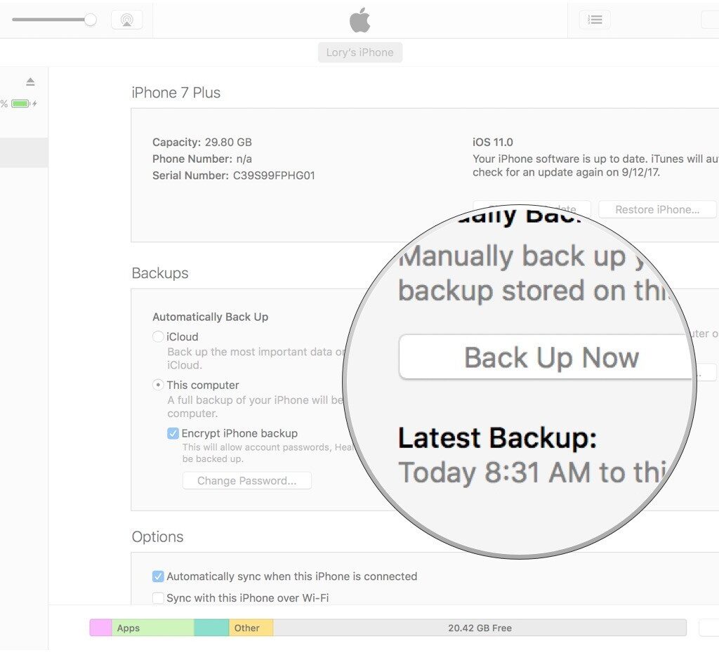 Galite naudoti iCloud sukurti savo įrenginio atsarginę kopiją arba galite prisijungti prie iTunes savo kompiuteryje. Viskas priklauso nuo Jūsų. Pagrindinis skirtumas yra tas, kur saugomos jūsų atsarginės kopijos. iCloud atsarginės kopijos saugomos debesyje, o iTunes atsarginės kopijos yra saugomos jūsų Mac kompiuteryje ar PC”.